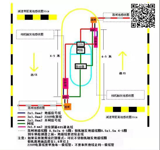 2、控制线(出入口机至道闸):RVVP4*0.5mm2