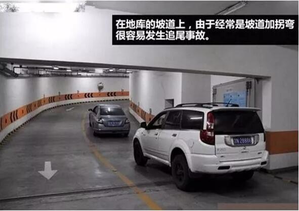 许多停车场所进出时需要拐弯+上下坡,在这种道路环境下,如果控制不好车辆的刹车或油门,会很容易发生追尾的情况。