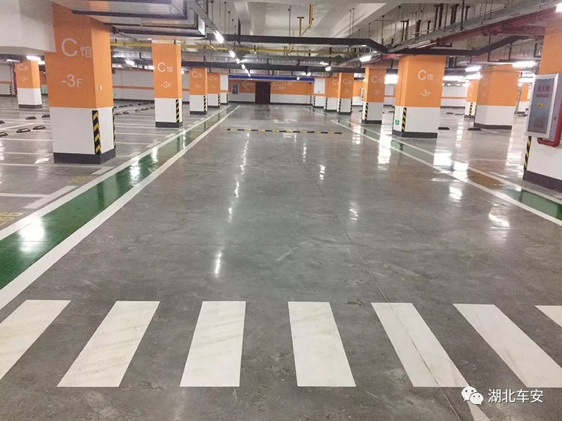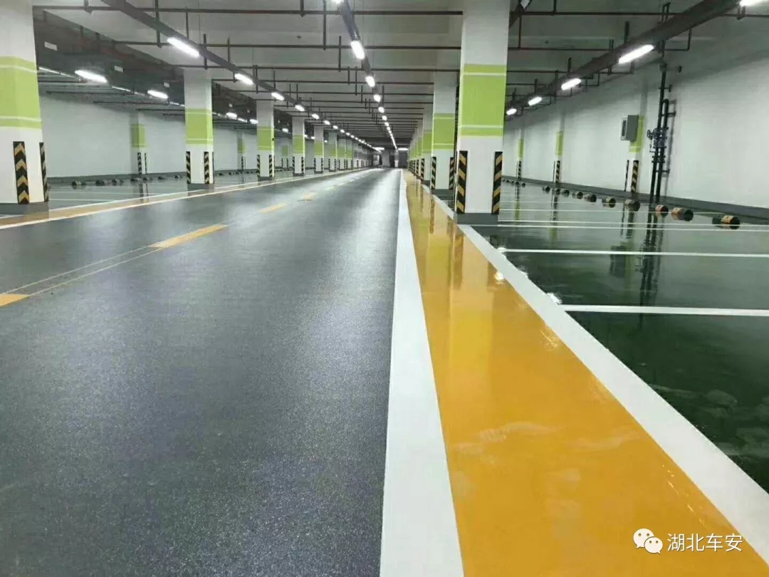 湖北车安针对各种类型停车场进行了研究,并对停车场内各个不同部位的车流量进行了分析,以耐磨抗压、安全防滑、洁净美观,环保降噪的标准,提出分区设计停车场地坪的方案。