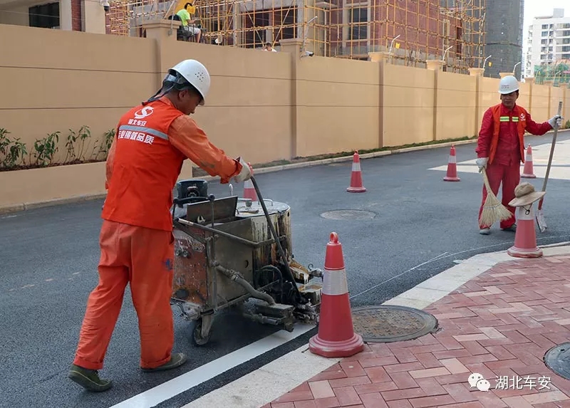 停车场划线,采用特种道路专用涂料,人工喷涂、厚度均匀、色泽清晰。